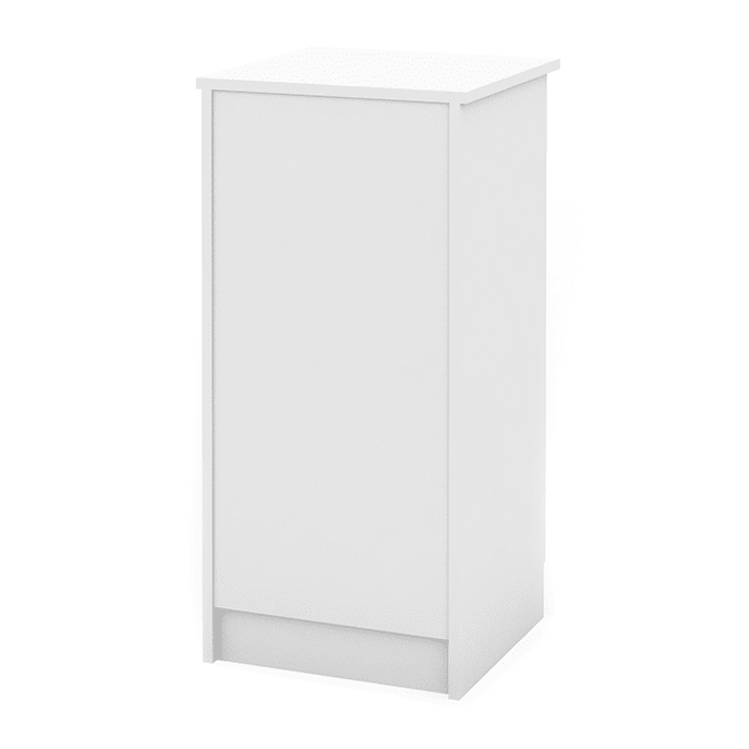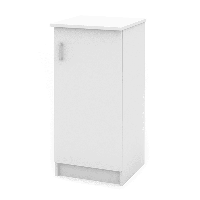 Korpus und Platte weiß, Türen Oberfläche weiß, verstellbarer Einlegeboden, verschließbar. Maße (BxTxH): 47,6 x 50 x 101,9 cm.