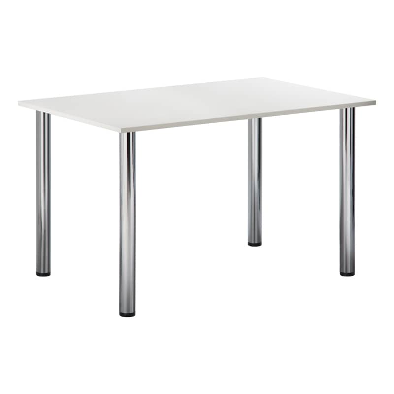 Gestell: Stahlrohr, verchromt. Platte: Holzdekor.