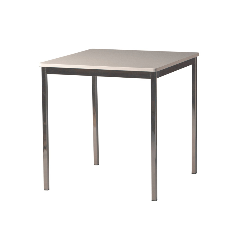 Gestell: Stahlrohr, verchromt. Platte: Holzdekor weiß